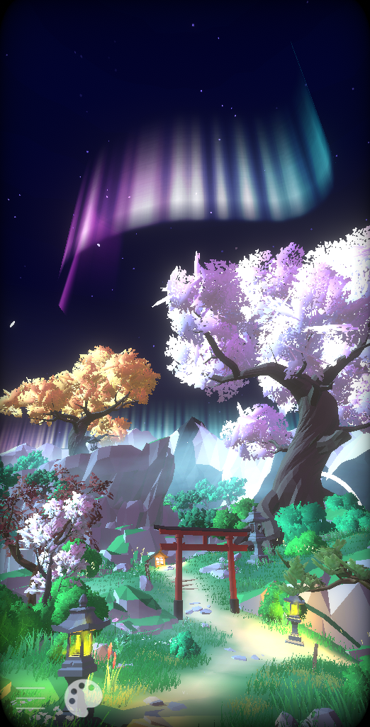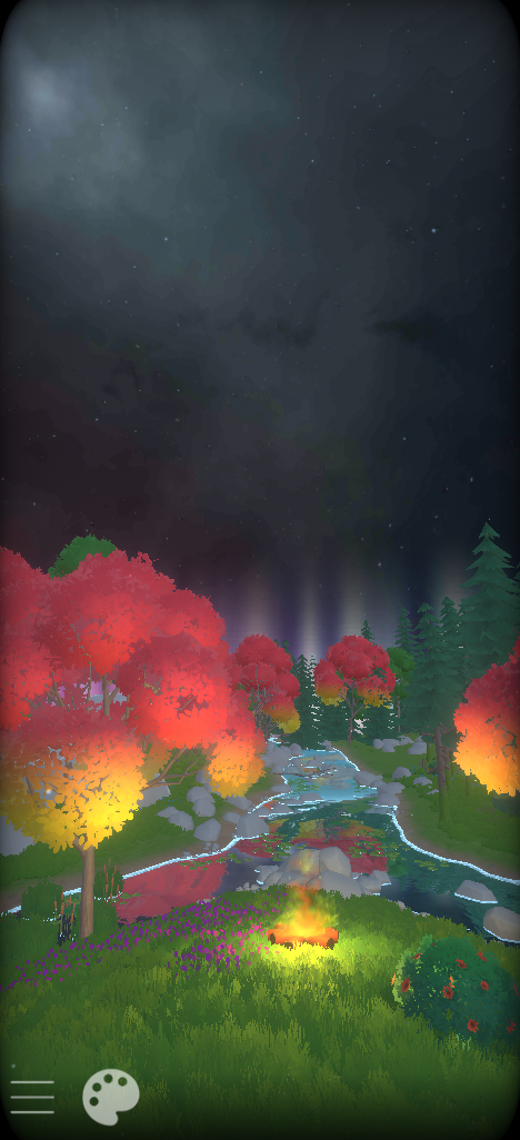 Paint the sky with vibrant aurora. Relax and find your zen by filling the sky with brilliant ribbons of beautiful colour and shapes.